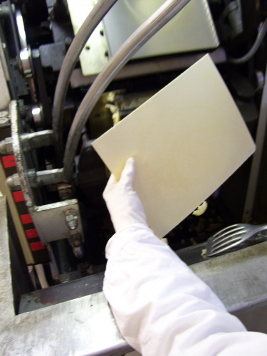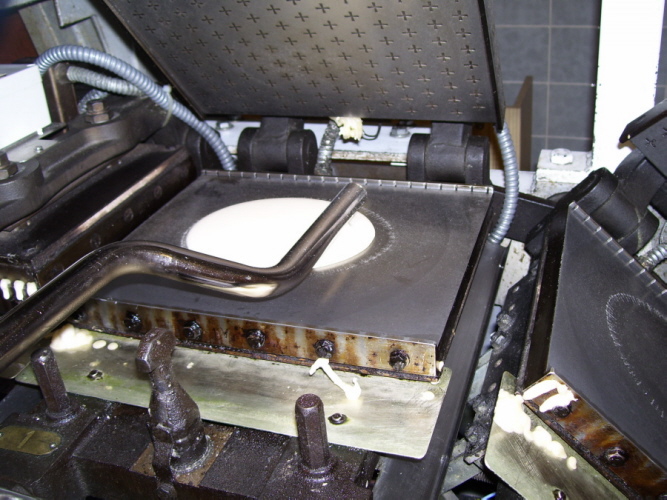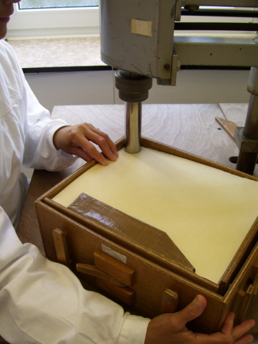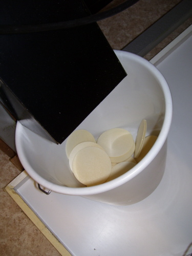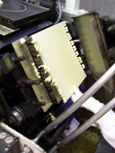 Mit einer besonderen Hostienbohrmaschine werden nun die Hostien ausgestanzt.