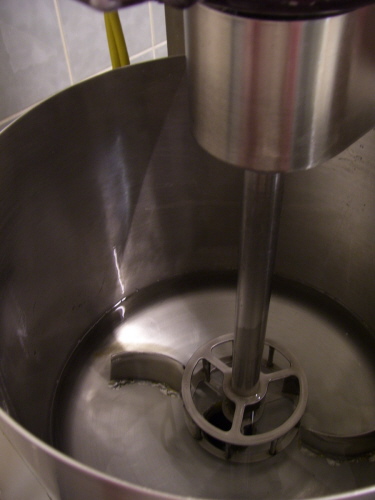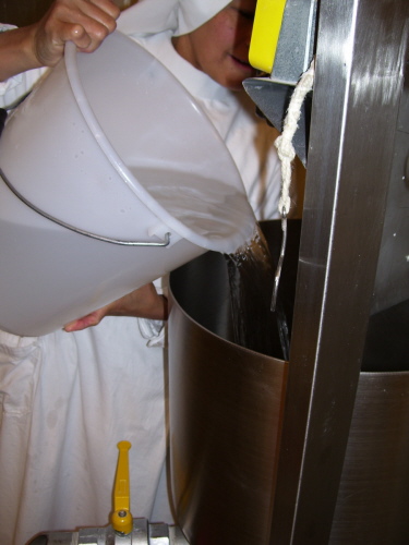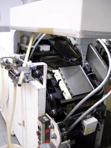 Über einen Schlauch wird der Teig auf die Backplatten gepumpt.