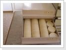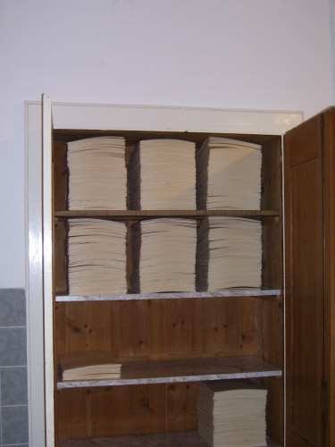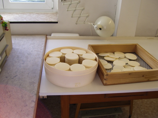 Bevor die Hostien weiterverarabeitet werden können, werden sie in einem besonderen Raum durch Wasserdampf angefeuchtet.